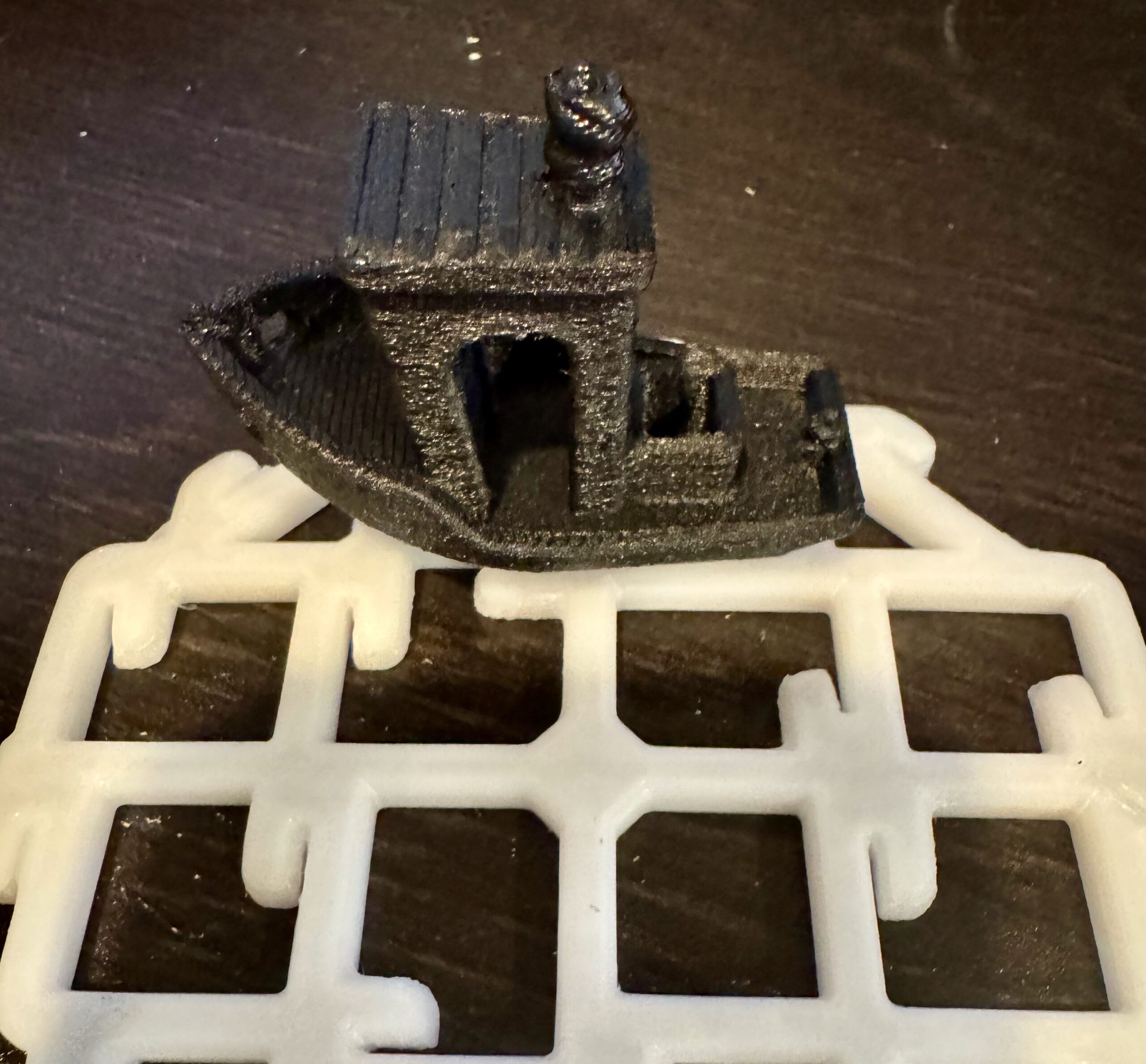 I printed an obligatory Benchy. It's not the best benchy in that it was after 8 hrs of testing and the filament had to go back in the dryer before I printed it. Also 290° is probably too low for this filament but that's as high as the C1 can reach.