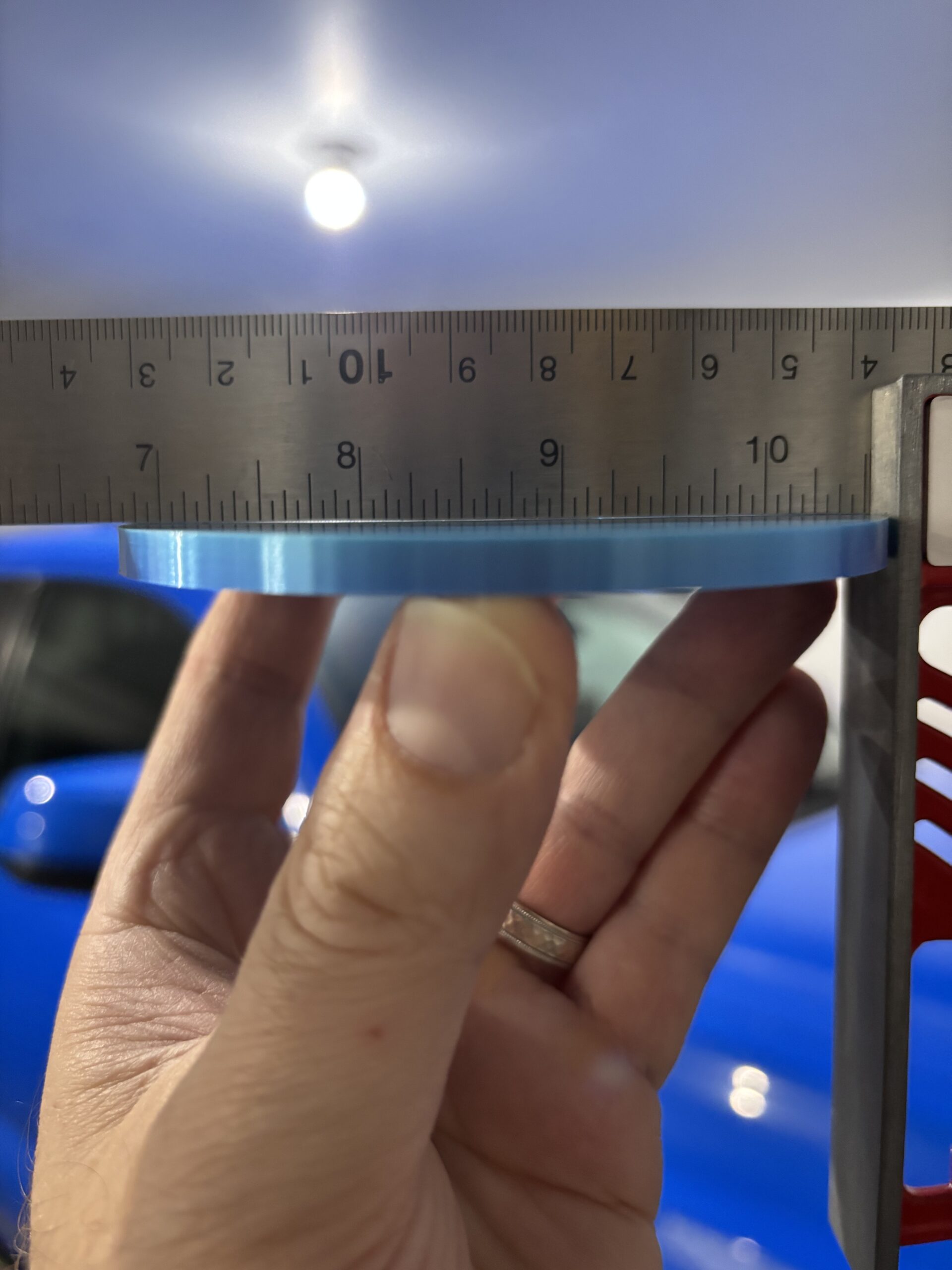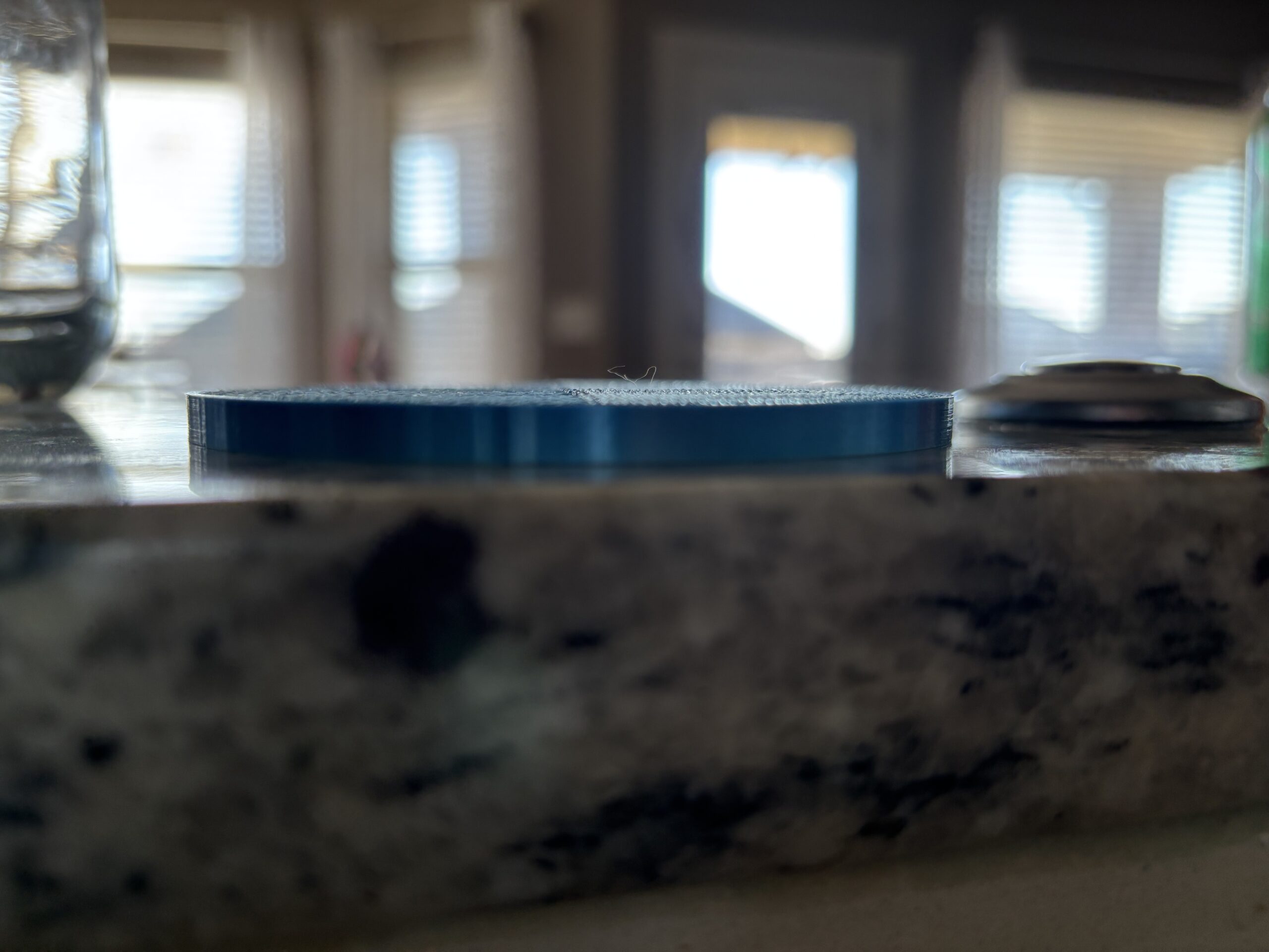 Sitting on a stone countertop, the bottom of the print seems to be nice and flat. Checking it with a square shows only the tiniest bit of deflection right across the diameter...