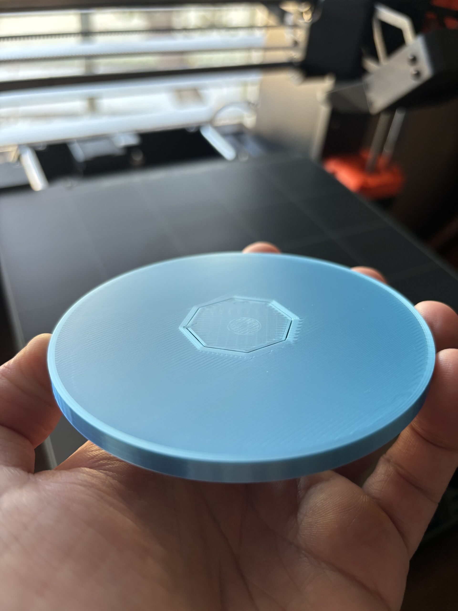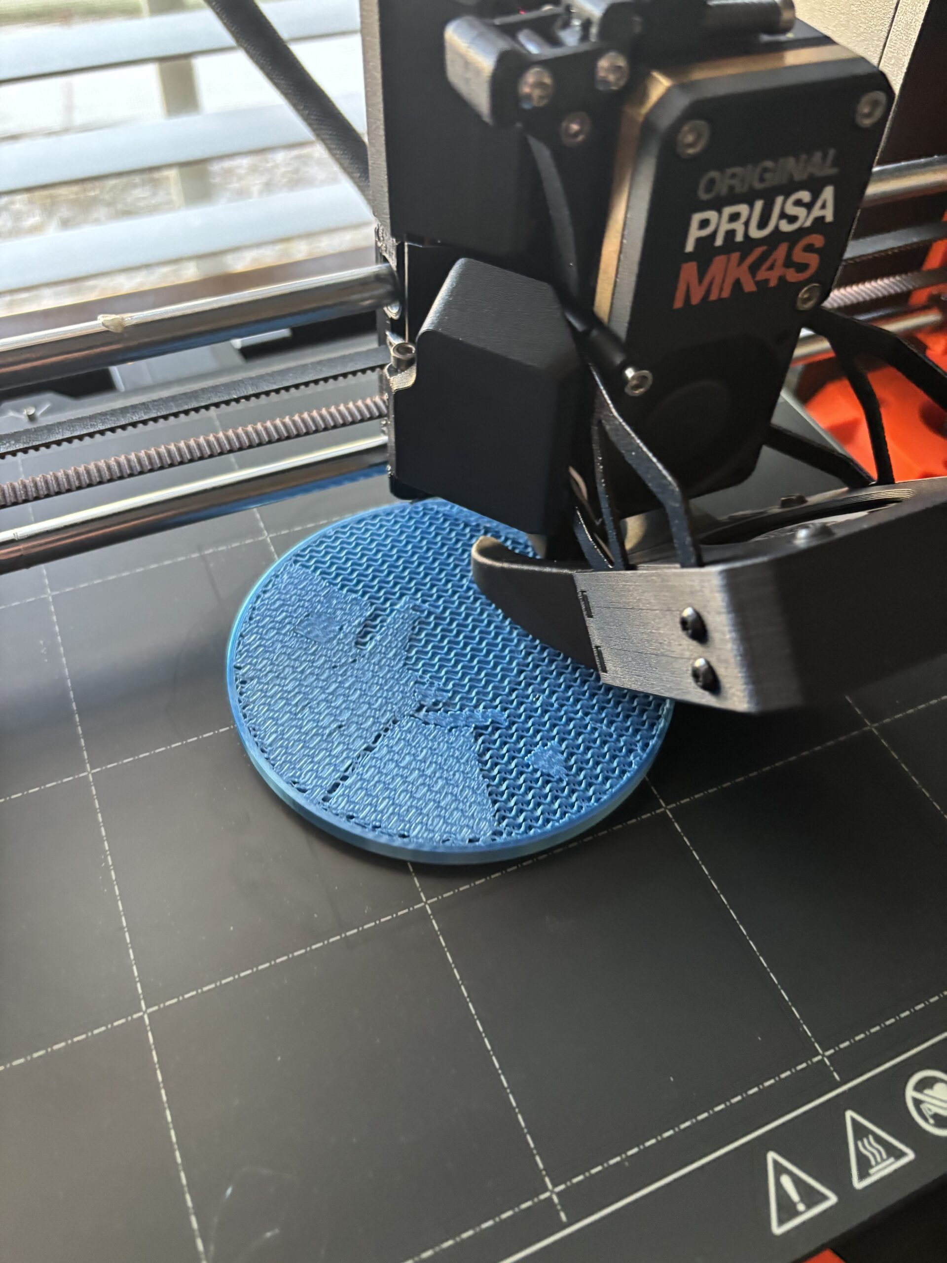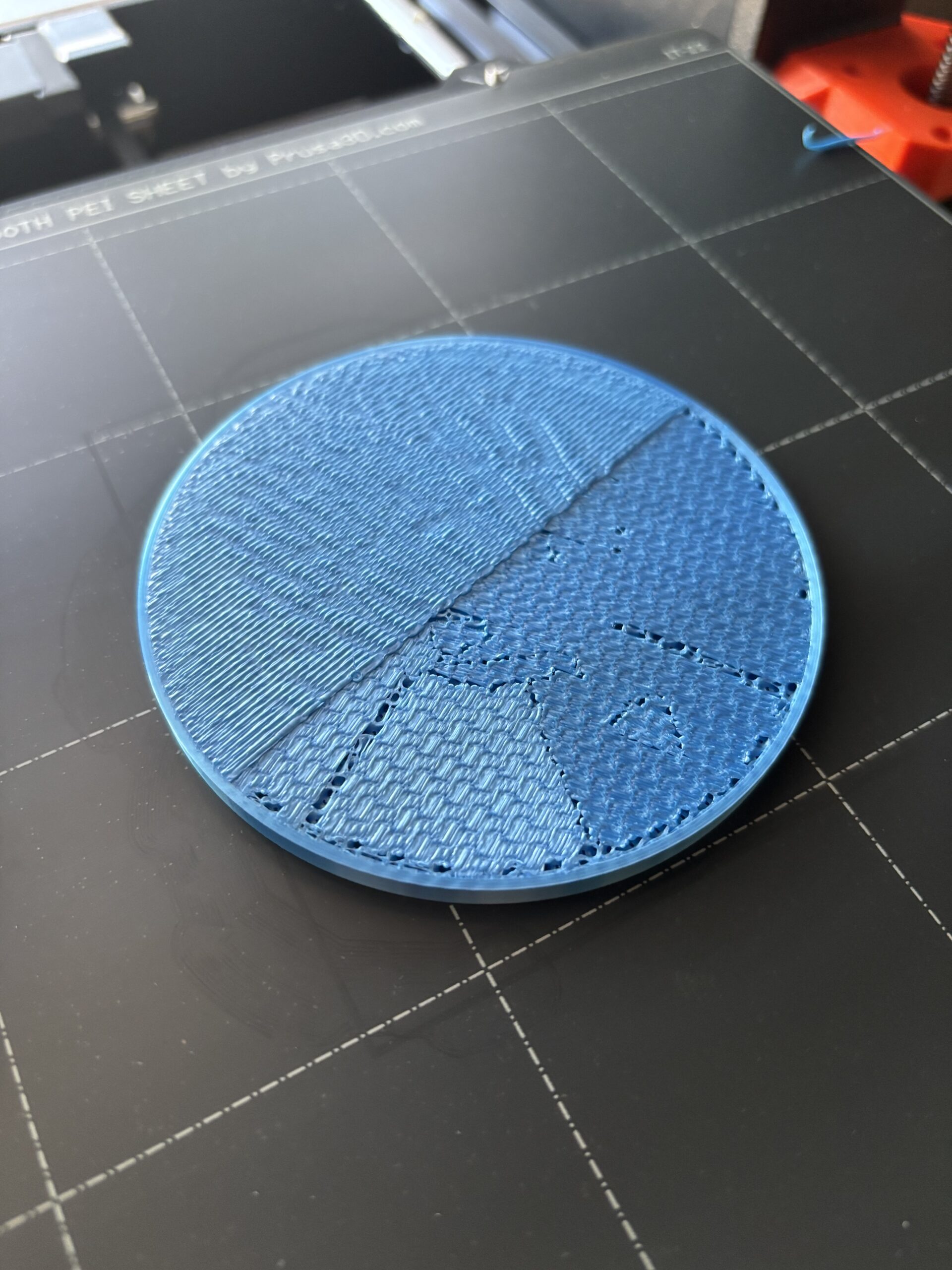 Model is basically a disc about the size of a coaster - just under 95mm across. The print gets to a height of about 5mm when this starts to happen. Oddly enough, the layers in the slicer show this same weird patchwork pattern that's visible in the very first layer after the infill. I'm printing this on an MK4S with the 0.4HF nozzle, using 0.1mm fast detail, "Overture PLA" for the filament (silk PLA to be exact), and 30% gyroid infill. Everything else is basically the stock settings with no other changes.