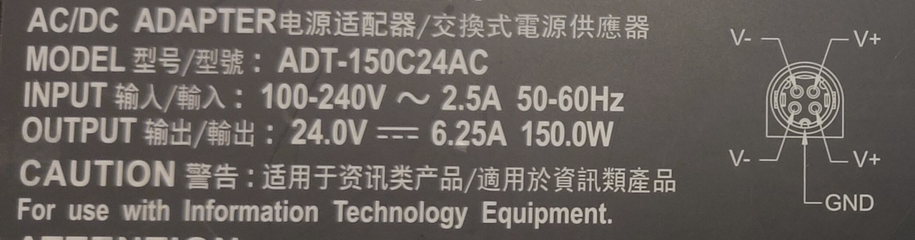 Here are the image of the power supply marking and the connector: