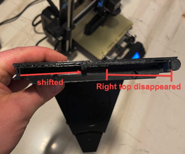 it looks like the whole top left part shifted 5.5cm and ended up in the middle of the print, possibly the reason why the right part was not printed? so weird!