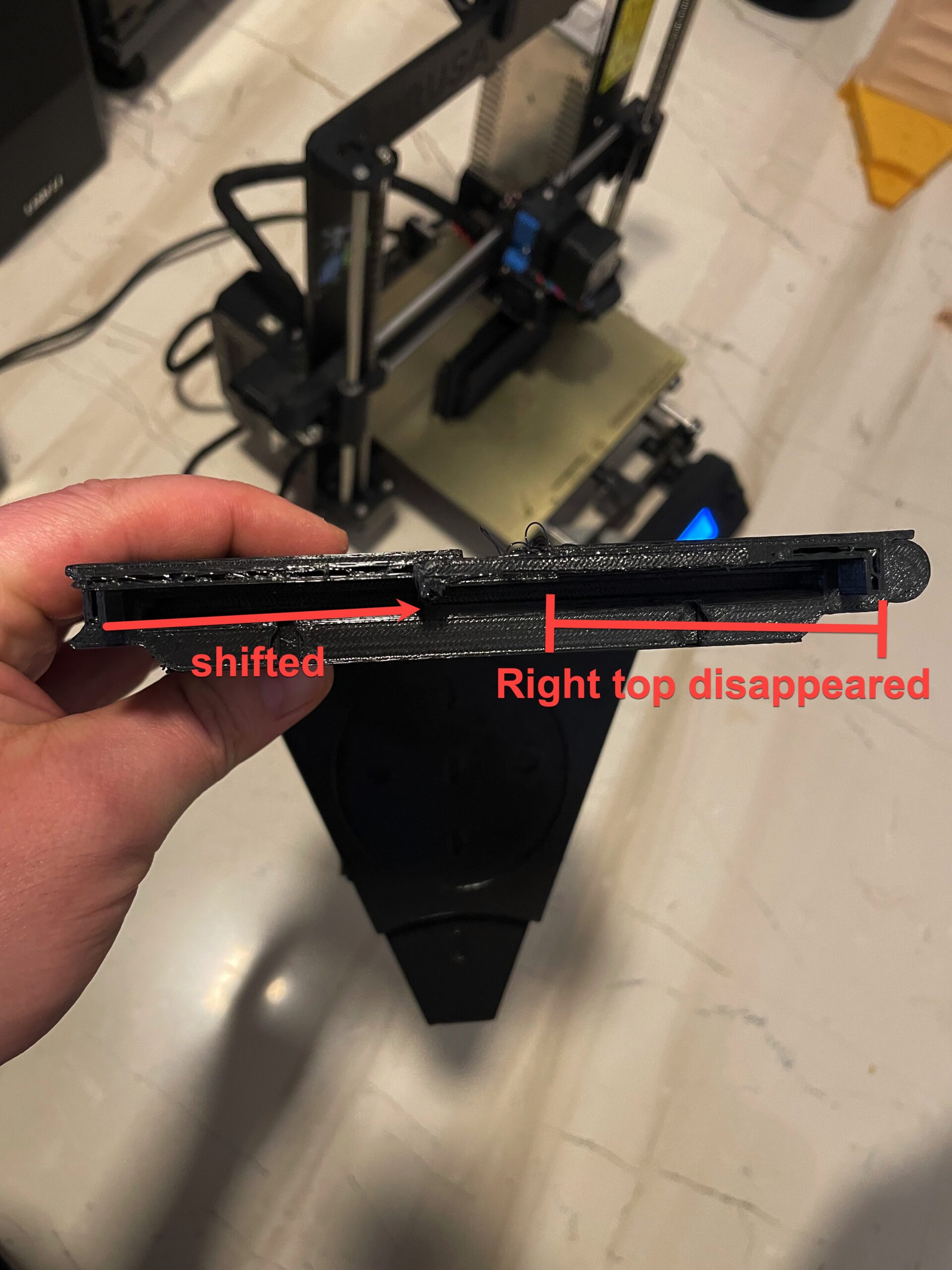 it looks like the whole top left part shifted 5.5cm and ended up in the middle of the print, possibly the reason why the right part was not printed? so weird!