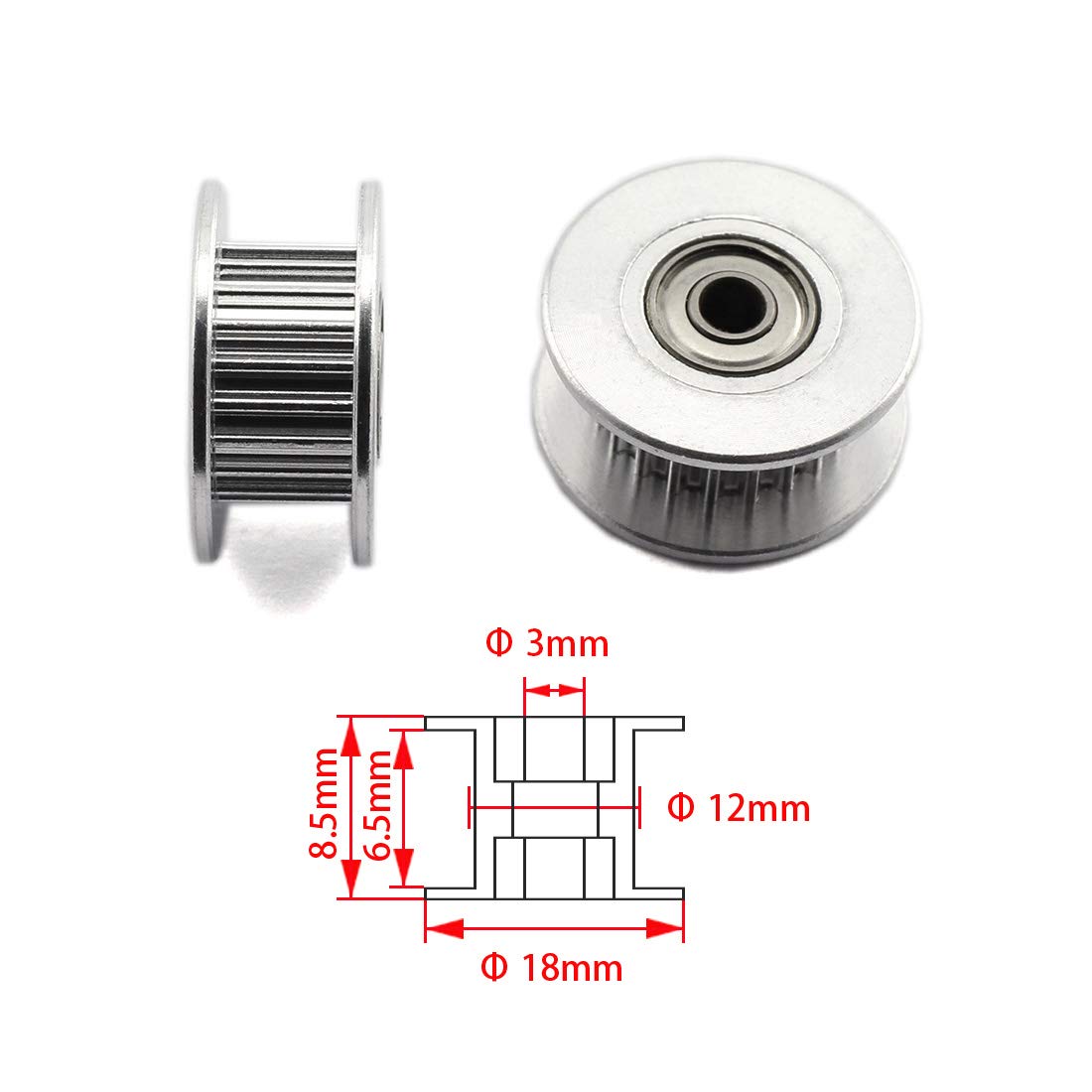 HJ Garden 2pcs 20 Teeth 3mm Bore Idler Timing Pulley with Bearing 2GT Aluminium Alloy H Type GT2 Synchronous Wheel for 6mm Width Belt 3D Printer CNC Mechanical Drive Silver