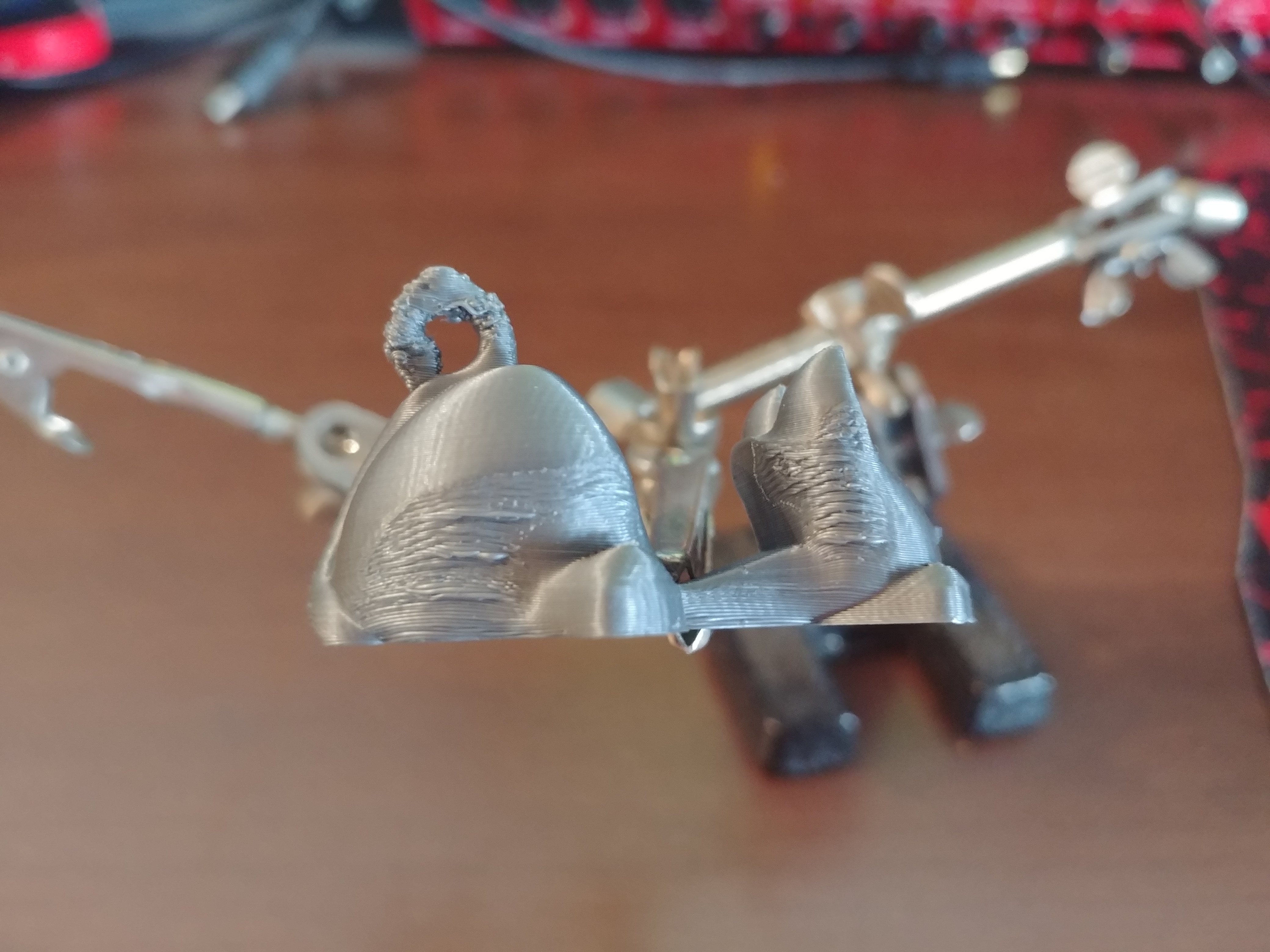 Right from the Gcode tests in PLA to 0.1 per layer of 3DHub (I still notice some irregularities in the overhang just between the legs)