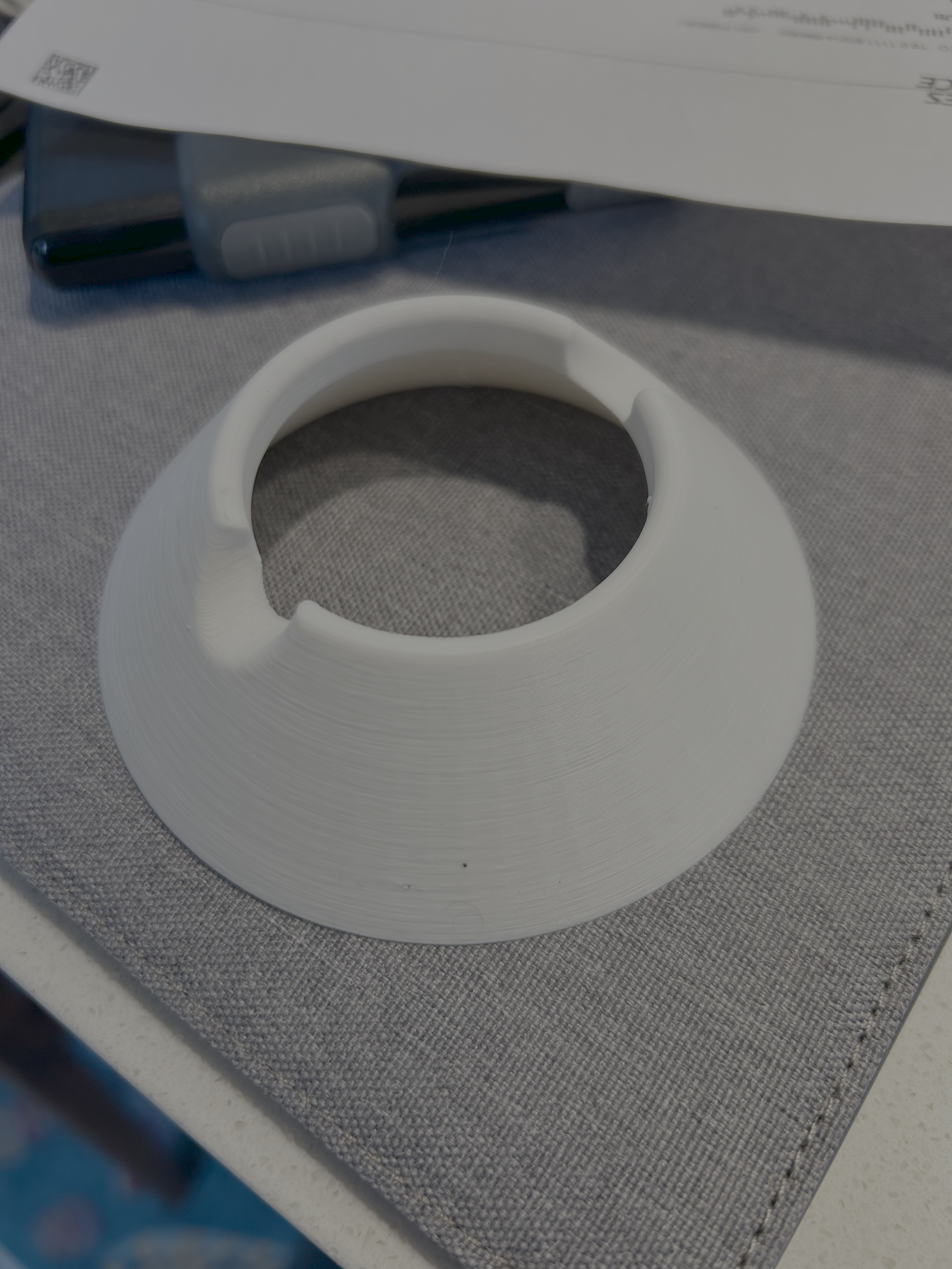 Is that a hollow cone?  If so the inner curve has layers barely supported from below and as the tension in the extrusion has a vector towards the centre there is a tendency for the inner extrusions to detach.  The simplest fix might just be to invert the part and print upside-down.