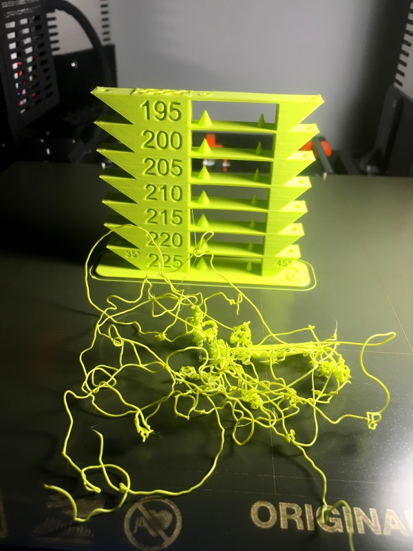 Note: 190C didn't print at all and the manufacture spec was 190 - 220C.