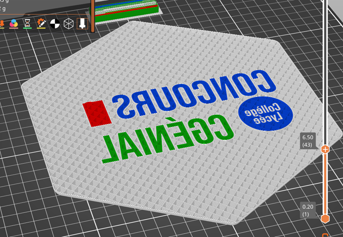j'ai téléchargé le 3mf et j'ai importé en tant que projet dans Prusa Slicer. Après le découpage, j'ai juste un souci de couleur vert et rouge sur le cgenial et le rouge face plateau.