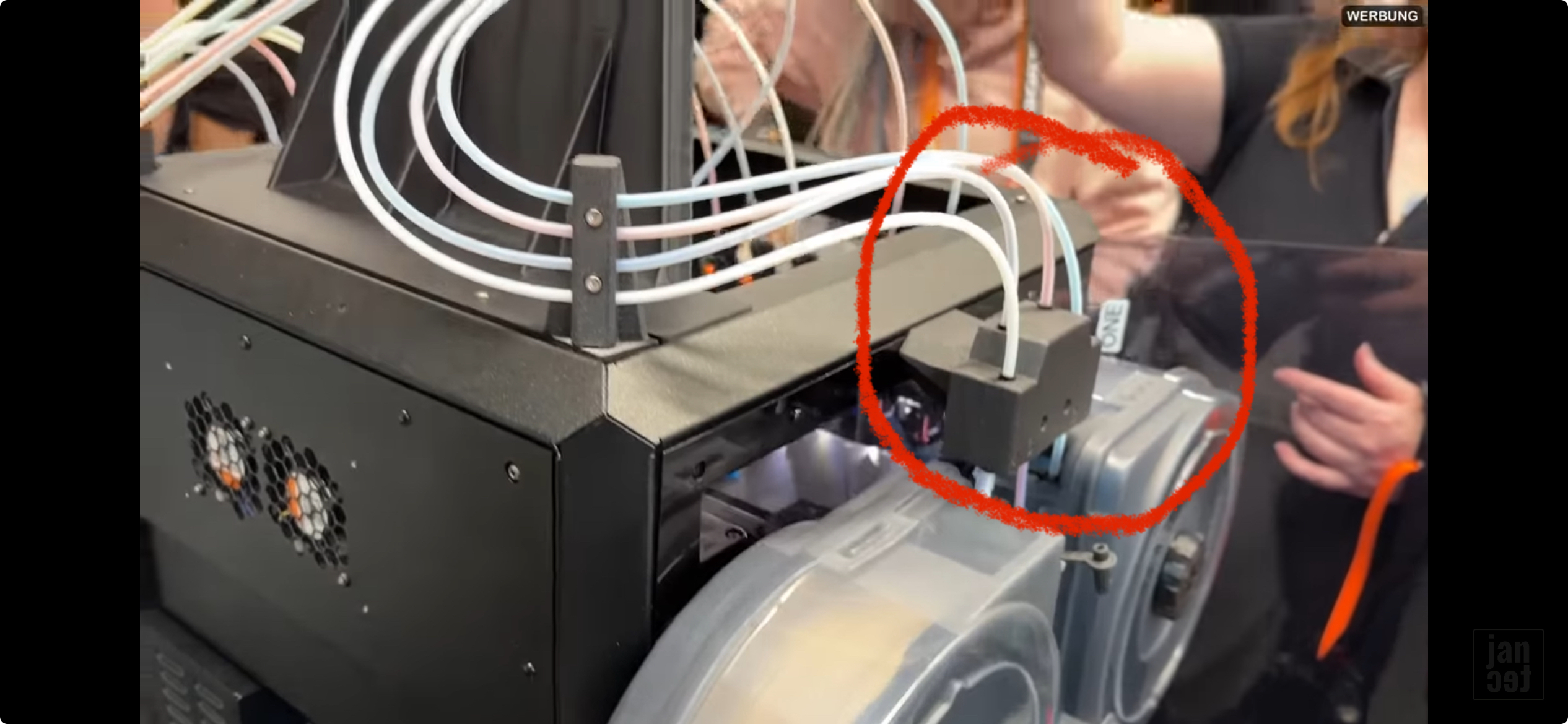 And there are a few integration questions which I am wondering about. E.g. it seems we are losing the side filament sensor. So how will filament runout detection -- and in particular unloading of the remaining bit of filament -- work with only a printhead sensor? (Or will it be a printhead sensor?? I can't quite see how that works with the exchangeable tube & nozzle combos. It's listed as "will be there for the Core One version, but is not implemented on the Formnext demo unit" in the INDX specs.)