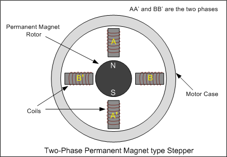 - Stepper motors are used in micro-stepping mode (up to 256 micro steps per full motor step, where a full motor step is either 1.8° or 0.9° of rotation). You increase the current on one motor winding, while decreasing the current on the other, both following a sinusoidal pattern (shifted by 90° between windings).