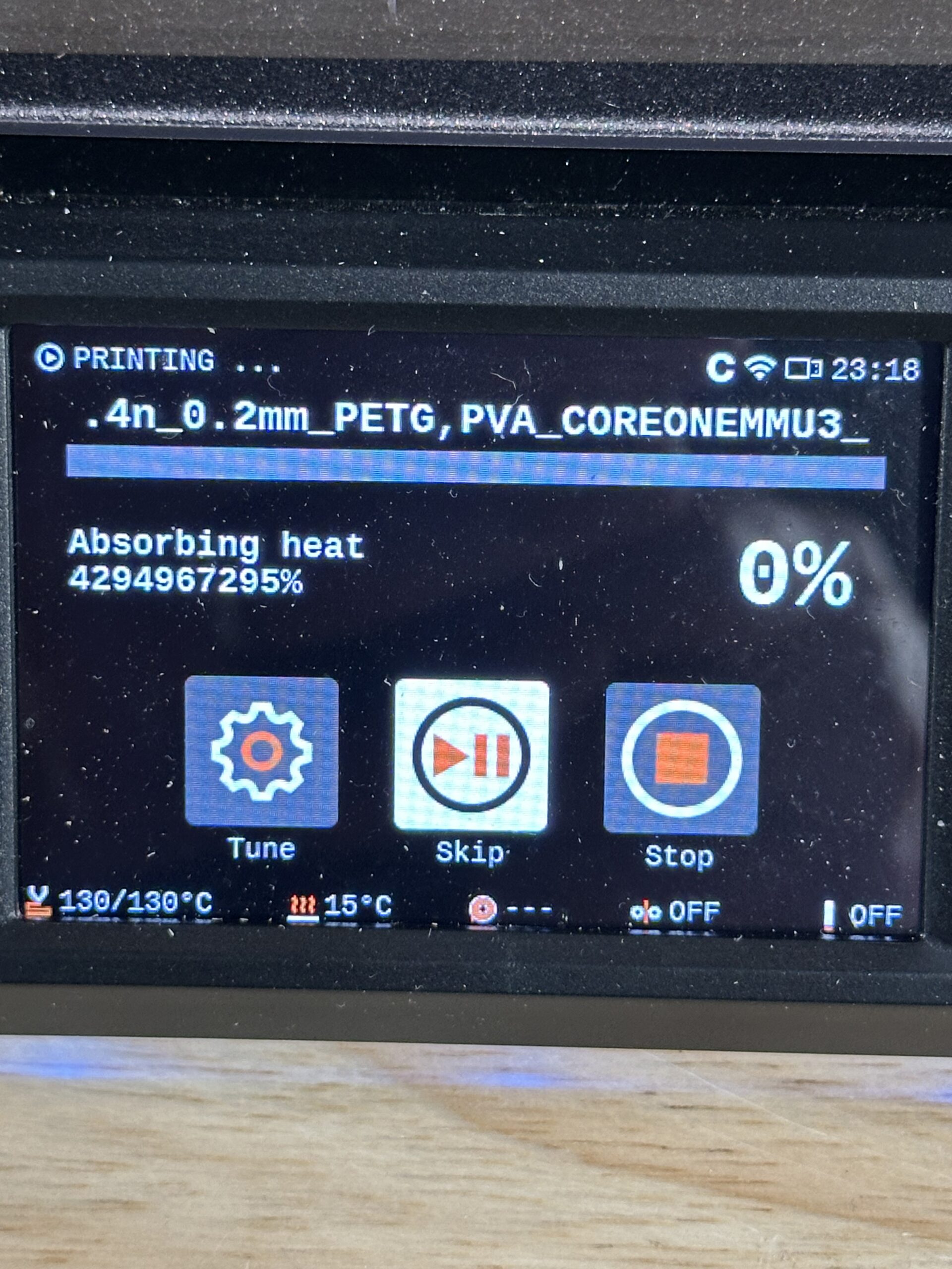 one thing I noticed with the print I was trying to do. No bed temp - I was laying down PVA first for the next print as a soluable setting - which called for no bed temp. So I think the slicer should have hinted that the heat soak may not be needed if bed temp is 0.Bottom line after 6.4.0 it sat at heat soak for a few hours - never started the print. I'll need to go back in today and disable heat soak.