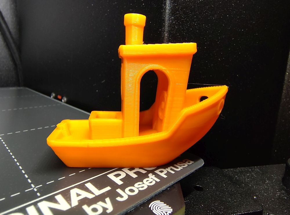 To rule out the slicer as the problem, I sliced the same model in Prusa Slicer and Orca - same settings same result. In addition, I stumbled upon several pre-sliced benchies that came with the printer. I tried printing one of them as well right away, and the stringing was noticeable there too.