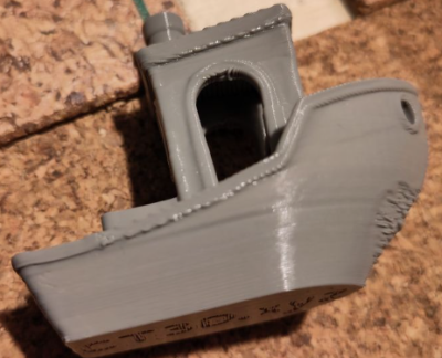 - benchy from printables newly sliced 45min print time estimate, default slicer settings