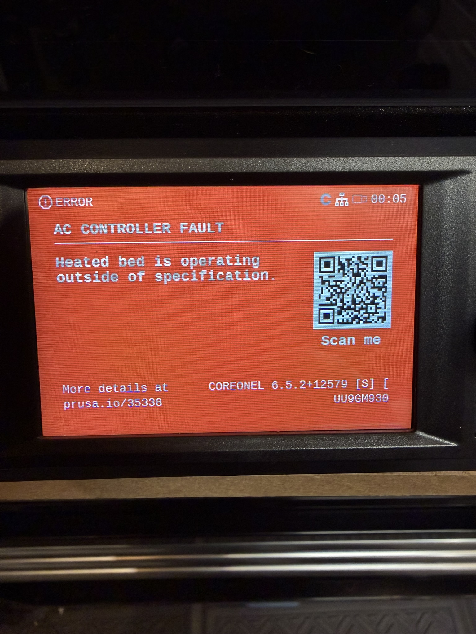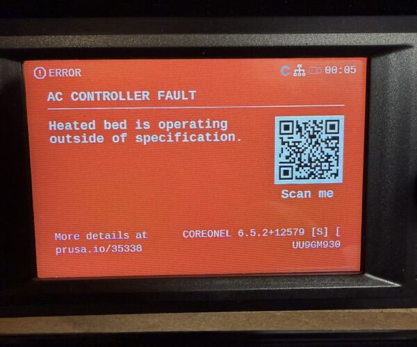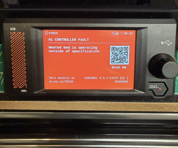 Core One L AC Controller Fault - Printer Currently Unusable - Error 35338