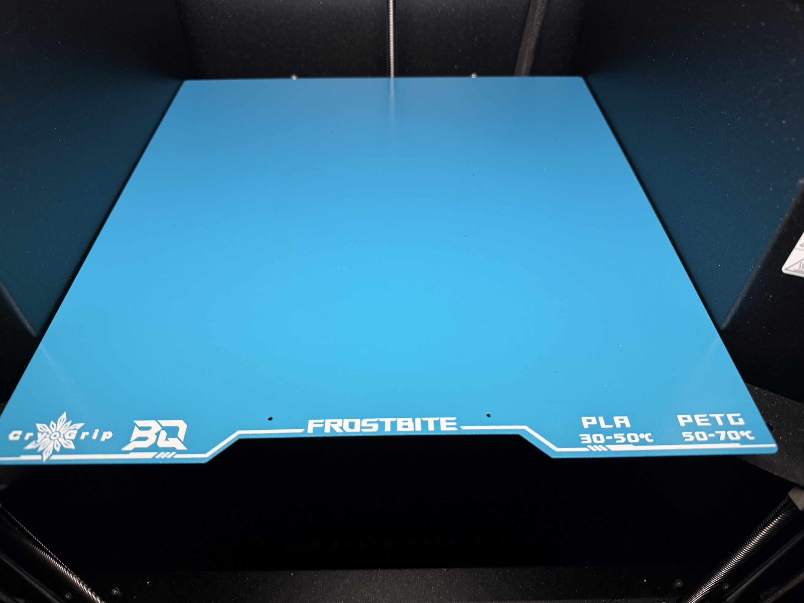 In case anyone is wondering, the "300x300" mm BIQU Cryogrip Pro Frostbite for Voron 300/QIDI Plus4 fits on the L - but barely. You have to carefully position it slightly biased to the left so it doesn't contact the spool holder screws. But it's another build sheet option (I really like these for PETG and PLA on my other Prusas).