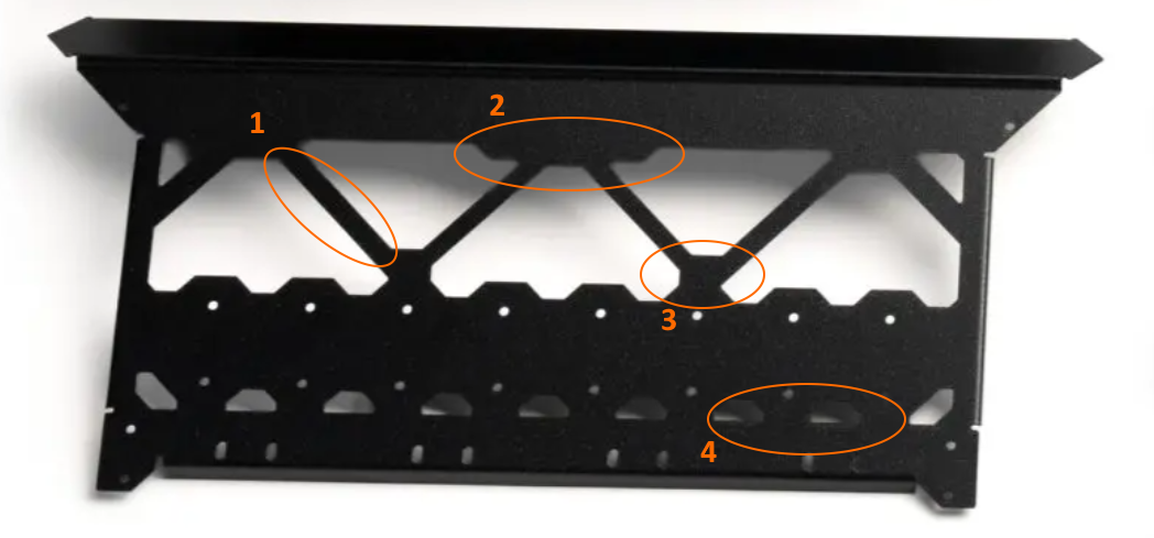 - What are those diagonal struts for anyway? There are no shear forces to take care of. Just omit these and give me a clear view. If you need more stiffness in the main mounting bar, give it a folded top edge -- the struts do next to nothing for that anyway.