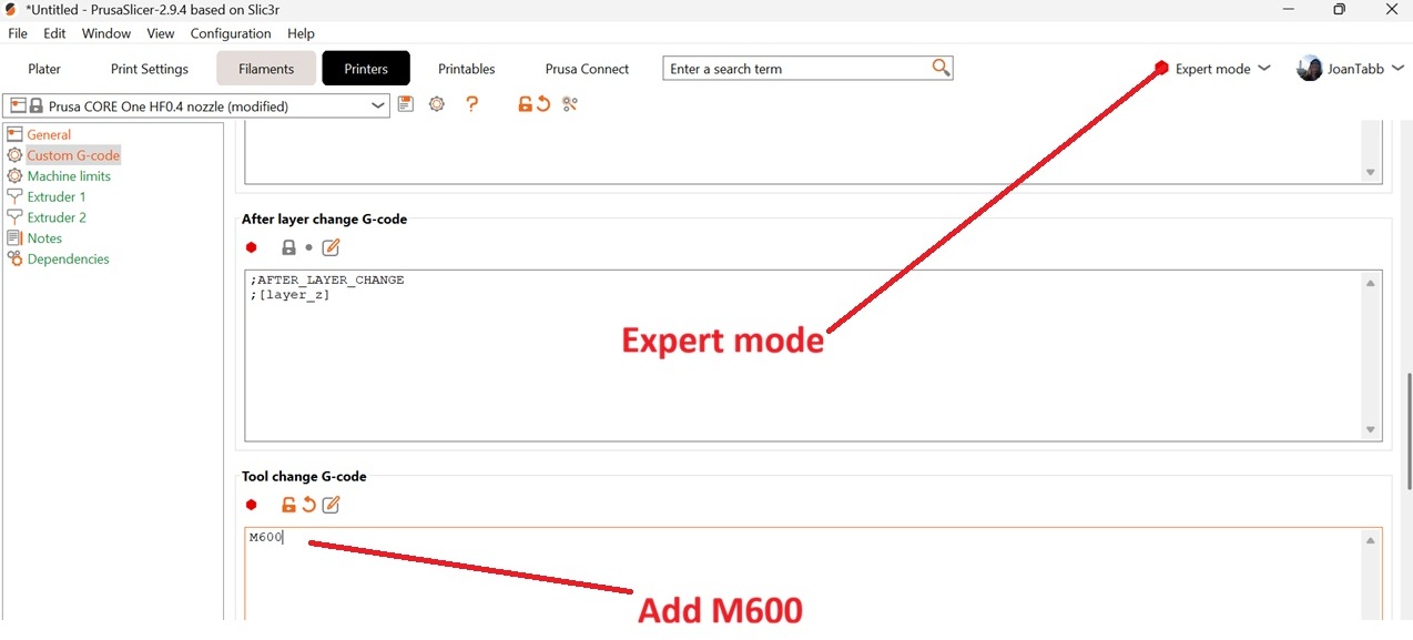 So I saw some custom g.code mentioned above. Where to paste that? And will that help me printing with the colours? Any other advise? Thanks.