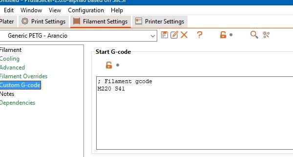 In this way the printer speed will be lowered each time I will use this filament without the need to use the knob or the LCD panel.