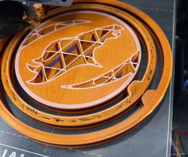 I won't claim to be an expert, I may have messed something up. I'm using a factory assembled Mk4 with the out of the box nozzle, PrusaSlicer 2.9.3, and 99.9% default settings (only modified fill pattern to adaptive cubic, enabled ironing, and bottom layer to octogram spiral, sometimes on .20 quality profile, and sometimes on .20 quality). The model was created in Blender and has printed successfully with ironing on countless times, along with all of my other similar prints, none have ever given me issues with ironing. I'm using a single extruder and multiple manual color changes to make these prints.
